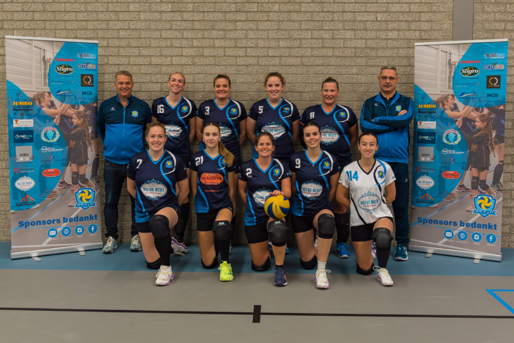 Speelsters: Anneke, Eva, Famke, Iris, Karin, Lynn, Nieke, Sandra, Sharon, Silke